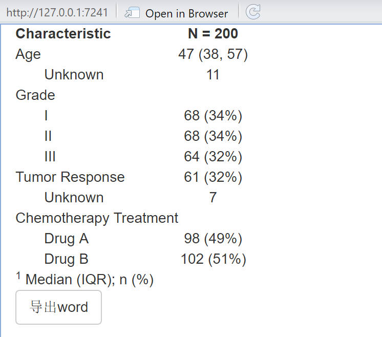 shiny中使用gtsummary